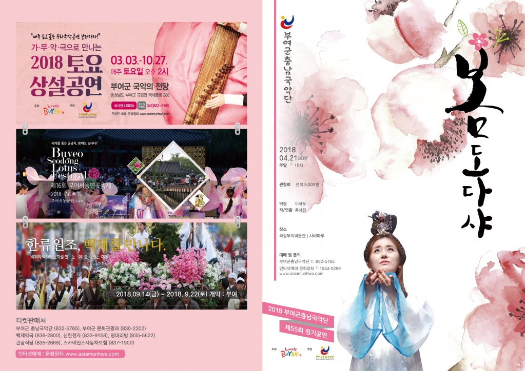 STAGE 부여군충남국악단 '봄도다샤' 부여군충남국악단 '봄도다샤'2018년 4월 21일@국립부여박물관 사비마루 Directed by Hong Sang Jin (홍상진) 구성/연출 : 홍상진제작 : 부여군충남국악단 공유하기 게시글 관리 별별창작소 'STAGE' Related Contents 연희극 '궁궐침범' 부여충남국악단 '서동-두개의 탑' 홀로그램드로잉쇼 '렛츠고' 넌버벌 뮤지컬 '그라미의 서커스 : 정글의 서커스왕'