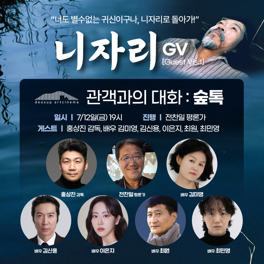 이번 GV가 마지막이 될 거 같습니다. 전찬일 평론가와 함께 감독 및 배우들의 영화 니자리에 관한 이야기를 들을 수 있는 소중한 기회를 놓치지 마세요. 극장은 약 40석 규모로 크지 않으니, 참석해 자리를 빛내주시면 감사하겠습니다.