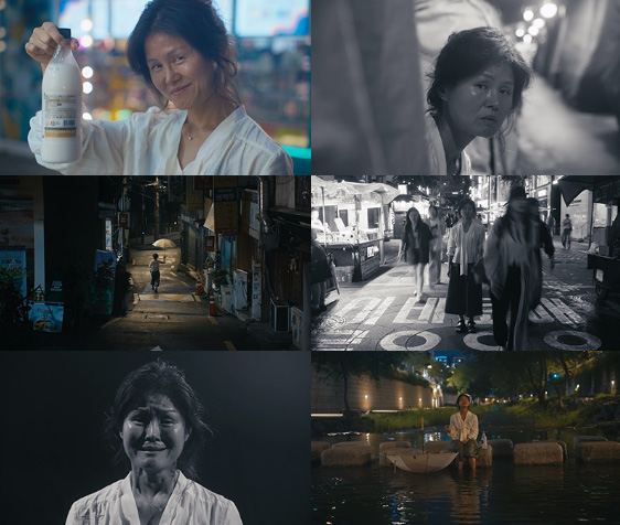 50대 여성의 갱년기를 끝이라 믿는 흑백의 자아와, 인생은 때론 맑다며 용기를 건네는 컬러의 자아가 빗속에서 만난다.
